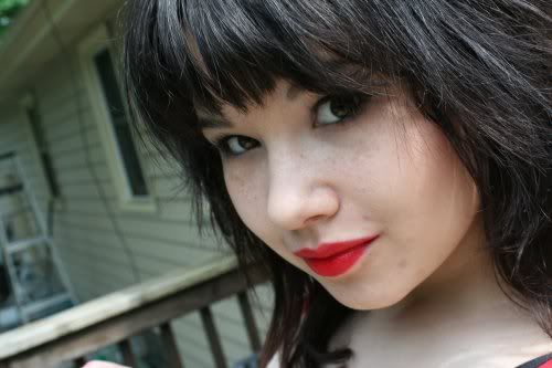 Some people suggest applying lipstick with a brush rather than straight from the tube. To me this method seems a bit too tedious, however if you prefer as always, your welcome to do so. I find that just keeping the tip of your lipstick pointed helps to give more precise application. Start in the middle of the bottom lip with heavy pressure, and slowly start to lighten as you work your way out to the edges. Do not simply go straight across, you may need to move the stick from side to side as if you were painting. As you work your way to the outer corners, start to bring your lips in toward your mouth to help make the area smaller. Follow the same technique for your upper lip, except bring your lips out into a wider "fish face" when you start to head toward the outer corners. Once the "basic" application is in place, be sure to go over the corners of your mouth, people seem to forget this or the little amounts that were applied are accidentally wiped off. After you make sure you have the right shape and such, if you have big lips like me stick them out a bit and get the inner wet area of your lips. This can be difficult since it doesn't stick well to moist areas, but if you apply it as if you would eyeliner on your waterline (persistently) it should stick. If you skip this step, after a while it can look as if you only have lipstick around the outer area of your lips and not in the middle (yikes!). Also, be sure to define the cupid's bow!